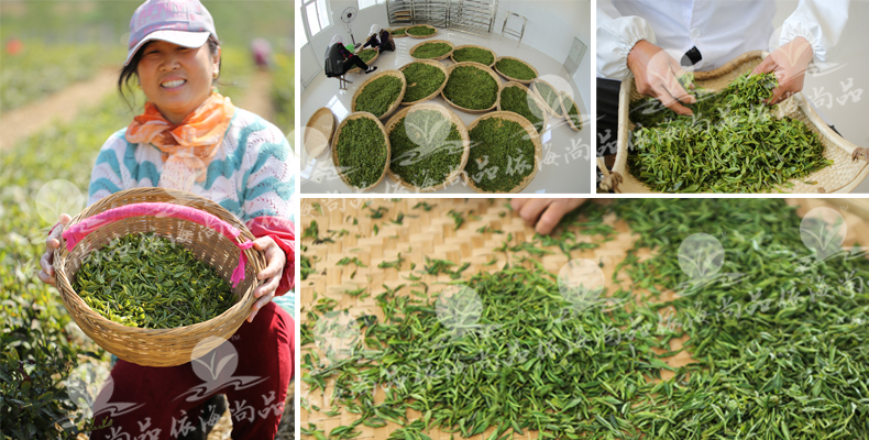 “依海尚品”茶園距海邊不到兩公里,地勢北高南低,呈35℃斜坡,光照充足、氣候濕潤、黃沙土壤,含有豐富的有機質和微量元素,極其適合茶樹生長。茶園內茶樹樹齡均處在3—5年興旺期(樹齡3—10年的茶葉),全部實施無公害栽培技術,采用人工和物理防治病蟲害,禁用除草劑、催生素,追施以內蒙羊糞、豆粕為主的優(yōu)質有機肥料,所產綠茶獲國家綠色食品認證。