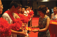 2013年8月21日,“情系貧困生,助力中國夢”集團人力資源總監(jiān)李俐萱為20位大學生頒發(fā)“興業(yè)助學金”。