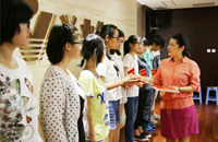 李俐萱女士向品學兼優(yōu)的學生頒發(fā)興業(yè)助學金。