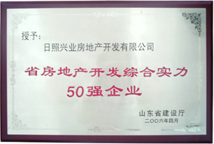 ·2006年4月,山東省建設(shè)廳授予興業(yè)房地產(chǎn)“省房地產(chǎn)開發(fā)綜合實力50強企業(yè)”