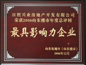 ·2006年12月,日照興業(yè)房地產(chǎn)開發(fā)有限公司榮獲2006山東樓上年度總評榜最具有影響力企業(yè)