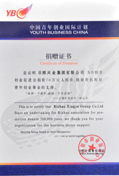 ·2010年,中國(guó)青年創(chuàng)業(yè)國(guó)際計(jì)劃捐贈(zèng)證書(shū)