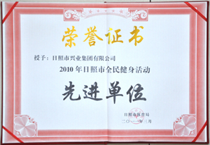 ·2011年3月,授予:日照興業(yè)集團(tuán)2010年日照全民健身活動(dòng)先進(jìn)單位