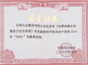 ·2016年5月,興業(yè)集團(tuán)選送的《全媒體融合發(fā)展助力企業(yè)經(jīng)營》在創(chuàng)新案例評選活動(dòng)中榮獲2016年“內(nèi)刊+”創(chuàng)新案例獎(jiǎng)