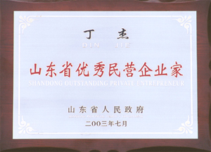 · 2003年7月,授予丁杰董事長“山東省優(yōu)秀民營企業(yè)家”榮譽(yù)稱號