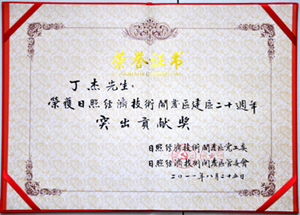 ·2011年8月25日,丁杰董事長榮獲“日照經(jīng)濟(jì)技術(shù)開發(fā)區(qū)建區(qū)20周年”突出貢獻(xiàn)獎