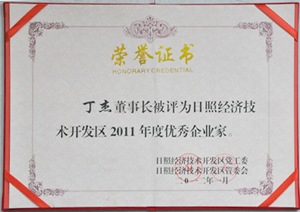 ·2012年1月,丁杰董事長被評為“日照市經(jīng)濟(jì)技術(shù)開發(fā)區(qū)優(yōu)秀企業(yè)家”榮譽(yù)稱號