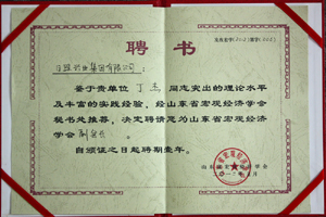 ·2012年5月,山東省宏觀經(jīng)濟(jì)學(xué)會聘請丁杰董事長為“山東省宏觀經(jīng)濟(jì)學(xué)會副會長”