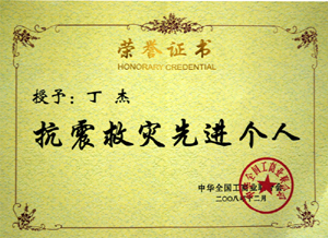· 2008年12月,丁杰董事長榮獲“抗震救災(zāi)先進(jìn)個人”榮譽(yù)稱號