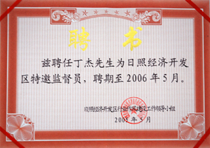 · 2005年2月2日,茲聘任丁杰董事長日照經(jīng)濟(jì)開發(fā)區(qū)經(jīng)濟(jì)顧問