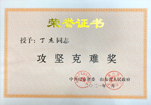 ·2021年2月,山東省政府授予丁杰董事長“攻堅克難獎”