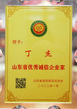 ·2022年1月,丁杰董事長獲評“山東省優(yōu)秀誠信企業(yè)家”