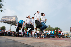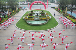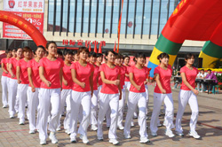 2013年9月28日,第九屆職工運(yùn)動(dòng)會(huì)在興業(yè)財(cái)富廣場舉行,圖為社區(qū)中老年文體活動(dòng)俱樂部精彩的開幕式表演。 |