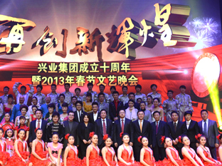 “再創(chuàng)新輝煌”興業(yè)集團(tuán)2013年春節(jié)聯(lián)歡晚會(huì)歷時(shí)2個(gè)多小時(shí),節(jié)目形式有歌舞、雜技、相聲、器樂、戲曲、情景朗誦等,內(nèi)容豐富,精彩紛呈;特別是央視著名主持人小尼和國家一級(jí)演員李玉剛等明星的加盟,讓整臺(tái)晚會(huì)無比璀璨;借助演播大廳極具現(xiàn)代化的舞美燈光效果驚艷四座,為我集團(tuán)成立十周年畫上濃墨重彩的一筆,充分展示了我集團(tuán)的企業(yè)實(shí)力,謳歌了興業(yè)人艱苦奮斗、團(tuán)結(jié)協(xié)作、拼搏進(jìn)取的創(chuàng)業(yè)精神和興業(yè)報(bào)國的高尚情懷,也為港城人民獻(xiàn)上了一場(chǎng)精彩、難忘、歡樂、美好的文化盛宴。 |